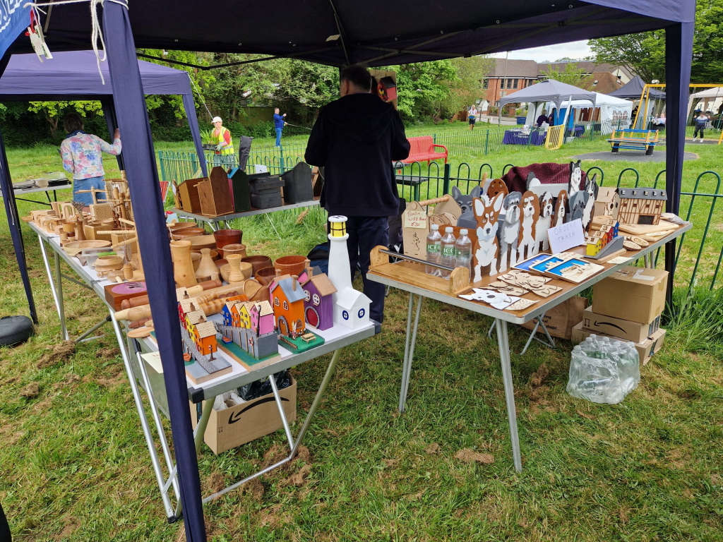 Who cares if it rains? We had a fantastic day at Titchfield. Although it was more about being involved in the local community, it turned into quite a profitable day for us thanks to the quality of items that we had for sale. John now has his work cut out to meet the delivery dates for his dog planters, they really stole the show, in fact We had a lady order a tiered planter which was a.bit of a challenge but it is so nice that if people can't see what they want they feel that they can ask us to make it. If you have a similar request please ask we will always look at the challenge. If anybody feels that they have missed out Moonstones Florist have offered to be our retail outlet, so if anybody feels the need for a dog planter or any of our other craft items contact Sarah.