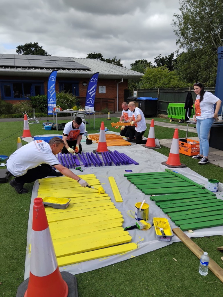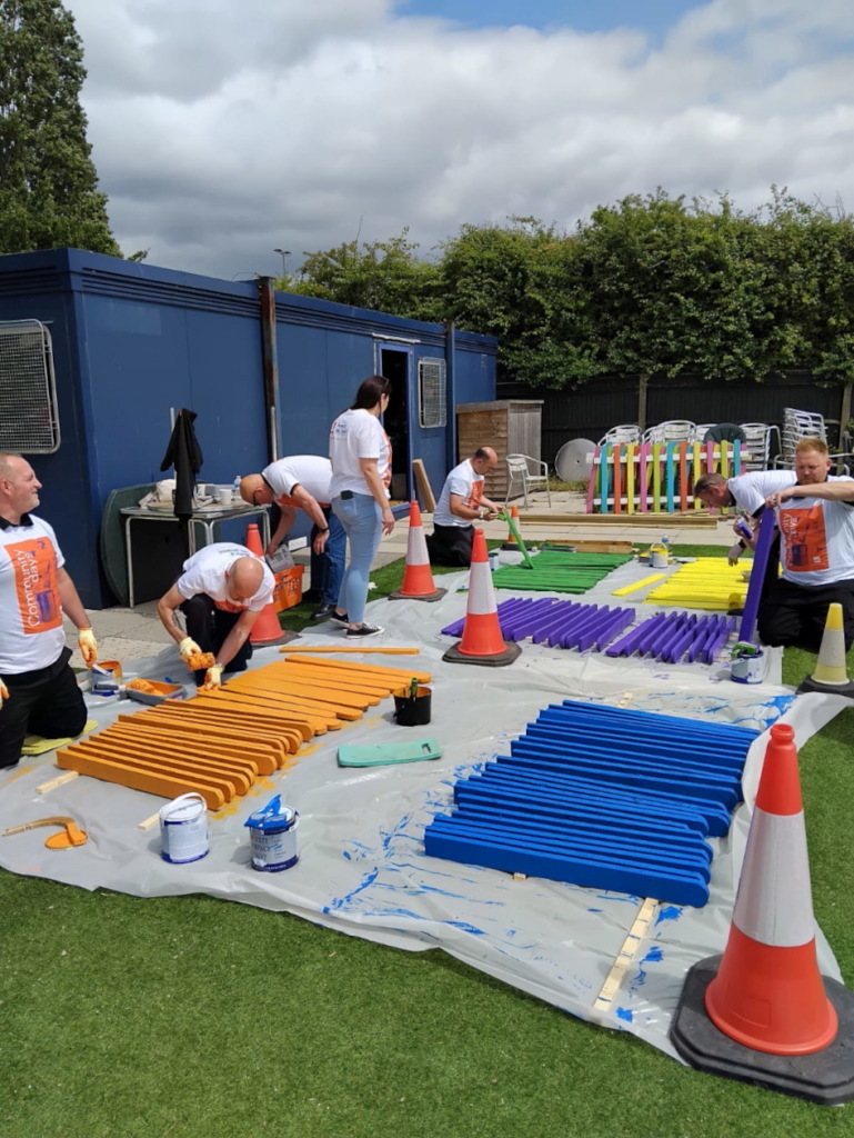 So we had planned for the 10th June so fingers were crossed for good weather. We had everything ready and made a start before the B & Q staff arrived as there was a lot of painting to do.
