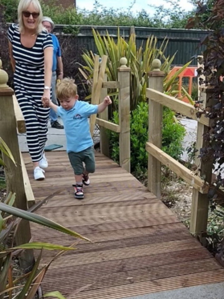 Young Rupert got so excited to be the first to cross the bridge (even though it wasn't quite finished) he made nanny minder come back over it with him! The pictures of the other children crossing the bridge is what it was all about.