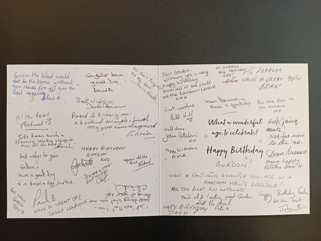 This month saw three members celebrate 250 years of survival between them. Barry G. and Rod P. each passed the 80 year mark and Gordon, as I am sure we all know by now, celebrated a glorious 90 years. Rod is a founding member whilst Gordon joined 6 months later and Barry is a relatively recent newcomer joining in 2018. All three of them have been absolute stalwarts of The Shed although we haven't seen much of Barry lately due to various reasons.
