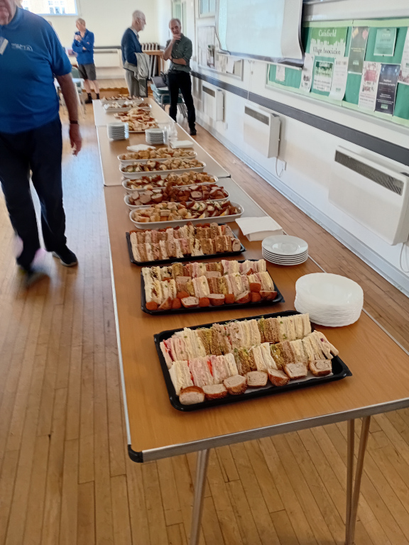 Fortunately we had extended our booking time to allow for a spread supplied by Gordon to honour his 90th birthday. The tables were actually groaning under the weight. Luckily this was one of our best supported sessions with 38 members and guests arriving. Even then Rod took the remaining scoff back to The Shed and filled the fridge with it. We now have enough sausage rolls to last for at least a week (assuming they don't turn green or grey).