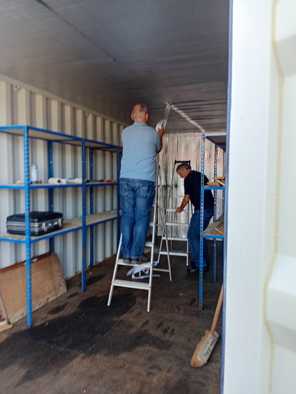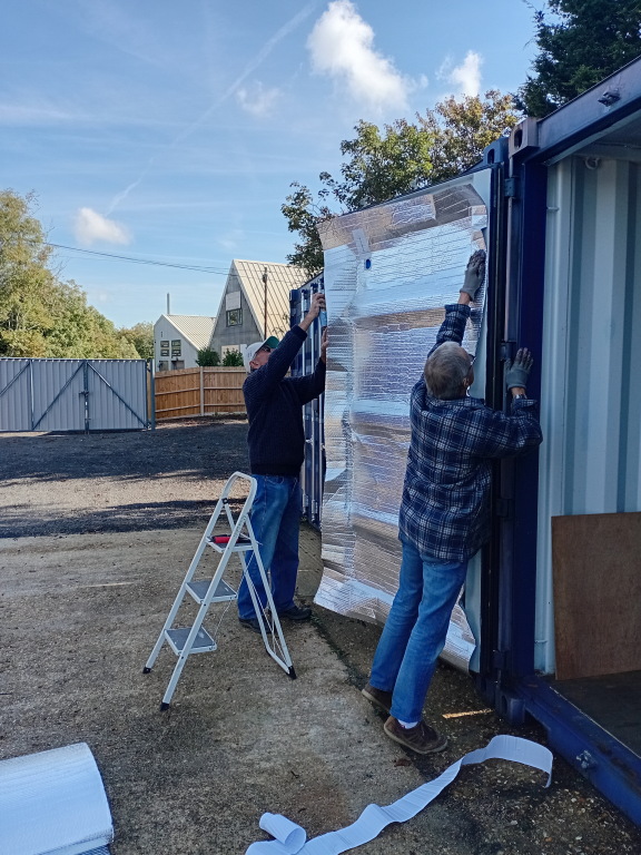 At last we have managed to lease a container within easy walking distance. Brian received the keys last week and the first job was to insulate it. The first thing was to put some of the racking up. It might have been easier if we had insulated before this but we really needed the space in The Shed.