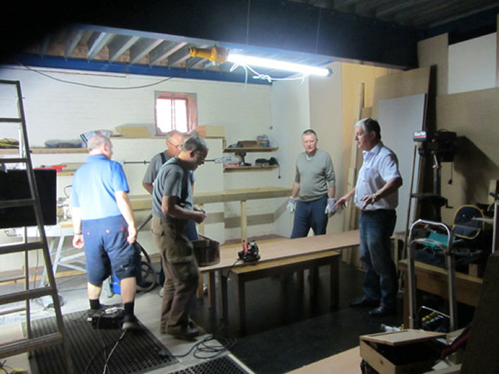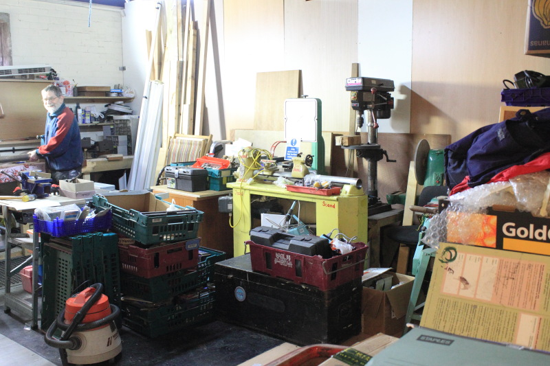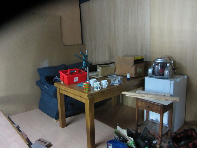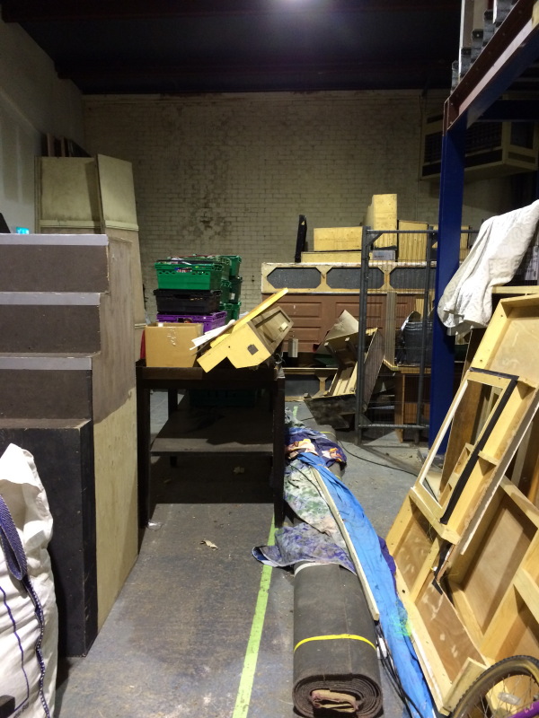 May to July - The theatre found a great spot for us, warm, dry but basically it had been used as a long term storage system with no immediate useage factor so the first move was to clear a path to it and start to erect the necessary furniture to turn it into something that might be recognised as a shed.