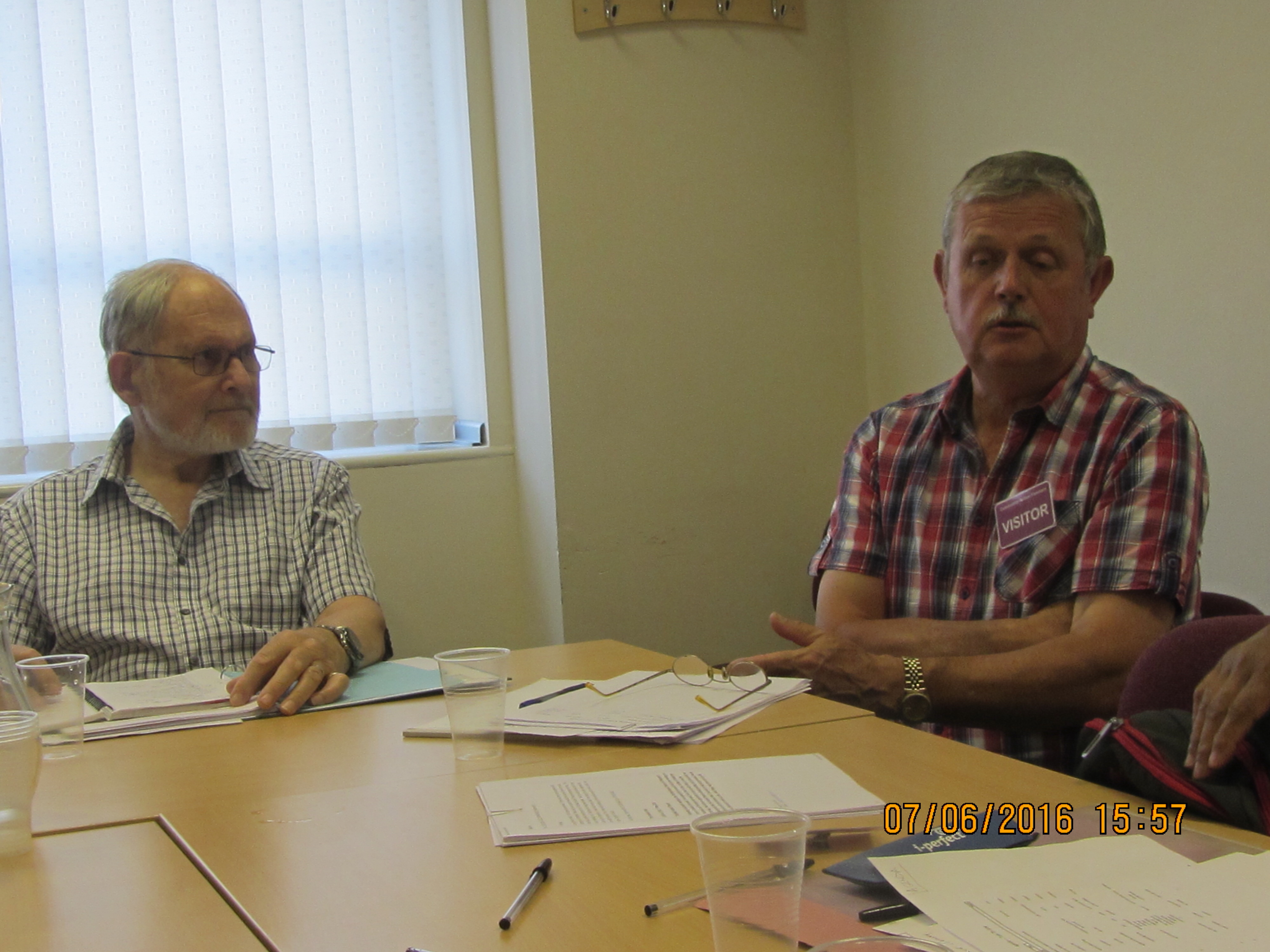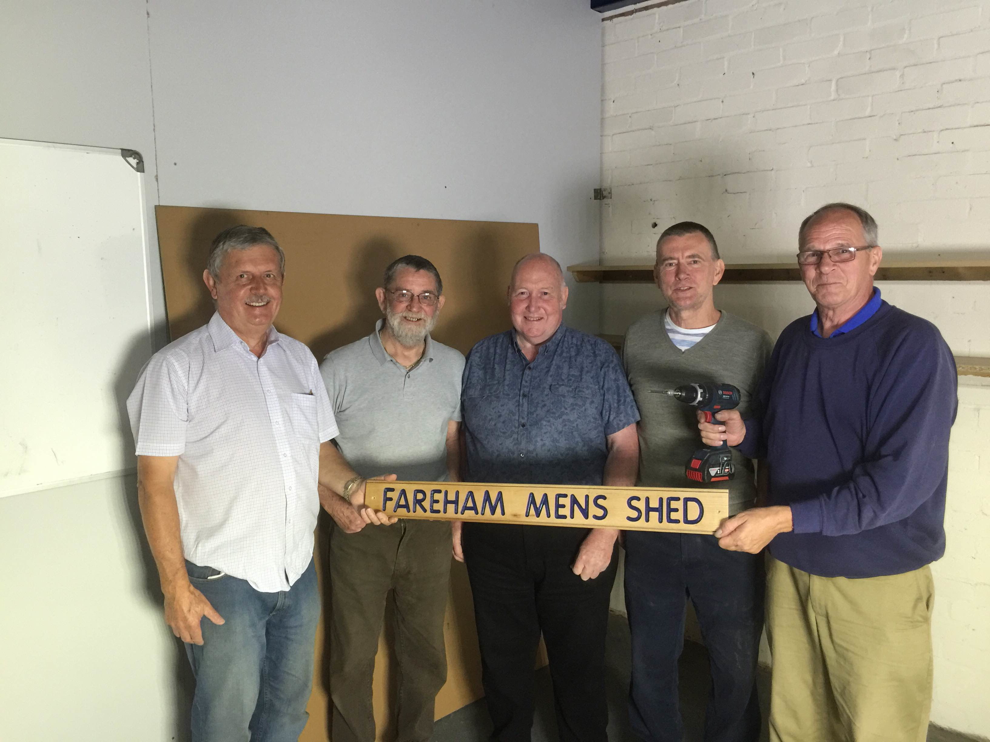 June - After the original meeting organised by Community Action Fareham and the search to find a venue the committee was formed and started to plan the future. Here the committee members are looking around and planning the facilities at the Titchfield Festival Theatre, with a flying visit from the Chairman of Australia's sheds.