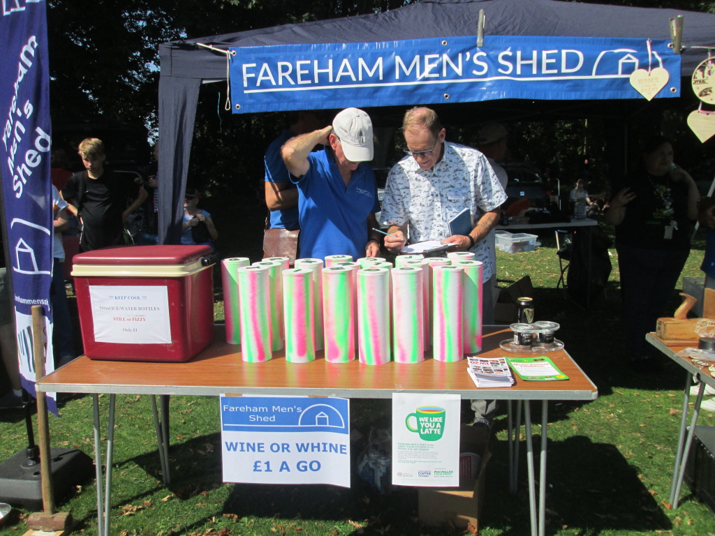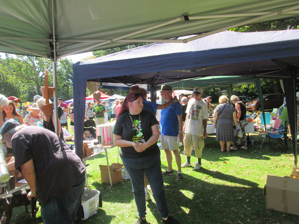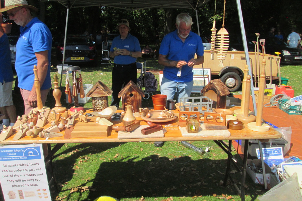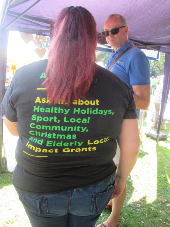 The guys turned up at the Shed quite early in the morning along with Eric and his trusty trailer, they loaded up and then realised that one of the tyres was flat, out came the pump and they were up and ready, the best bit is though, somebody on the pitch sold the pump, let's hope that Eric doesn't get another flat. This year we had two pitches at the Fayre - that was a bit of luck because we had more than enough items for sale along with the Wine or whine stall, the Shed made items and the bric-a-brac stall to fill them both. Heidi, Asda's Community Champion arrived to lend a hand, I couldn't resist a shot of the back of her shirt (sorry about the rear view Heidi) and if there is anything that Asda can do to help you or your organisation here is a list of the sort of things that they are into (see picture 6).