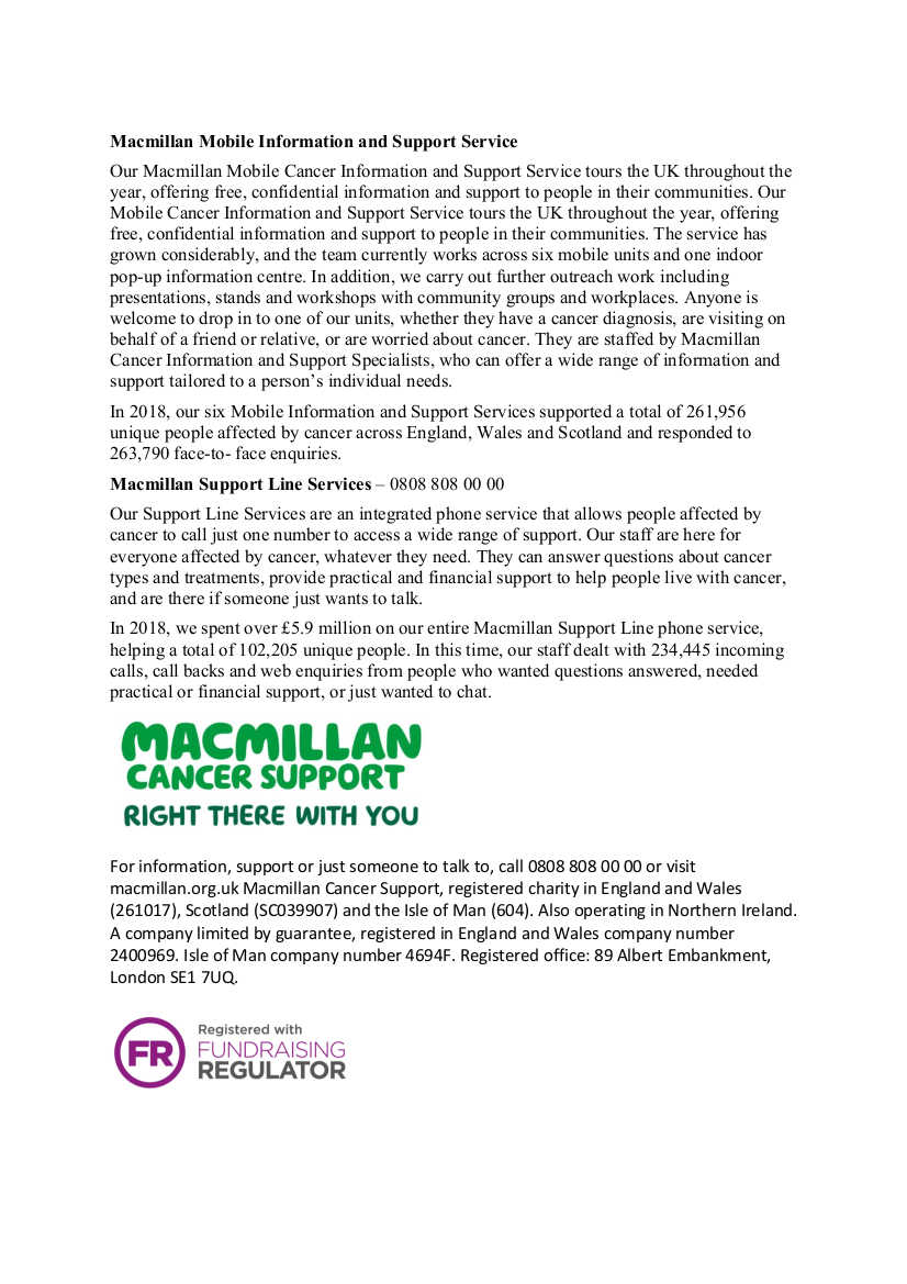 Although Peter's story was inspirational it didn't quite cover what I had hoped it would - the original idea was to try to introduce the services that the Macmillan Organisation offers and how to access them. Sandie, the lady who judged our Cakeophany competition has kindly sent me a leaflet giving a brief outline of those services and how to access them. Not quite as good as having somebody to throw thoughts at but certainly helpful. Perhaps we will hold another evening with a Macmillan Nurse or somebody similar in the future. I have added a pdf version to the site that you can access from our Downloads page