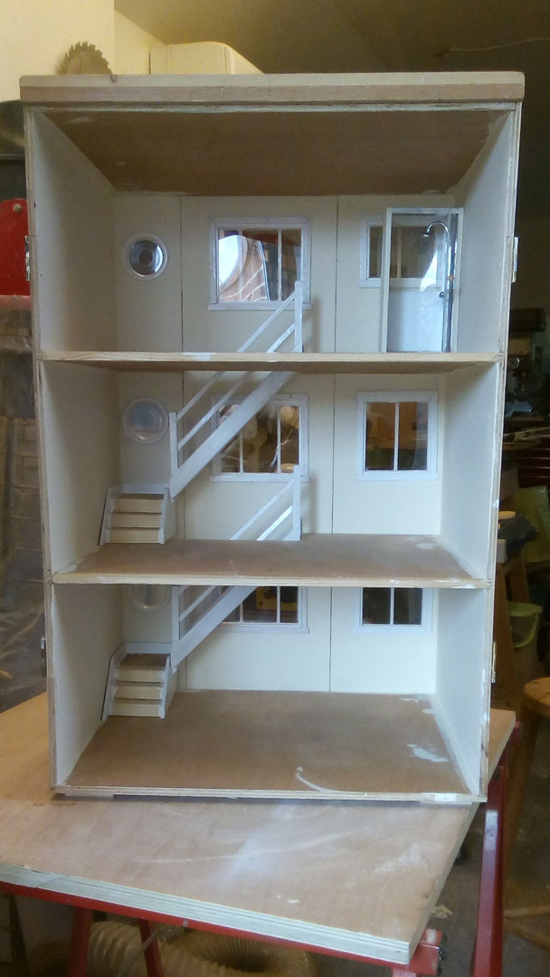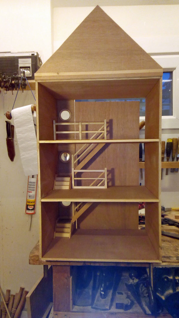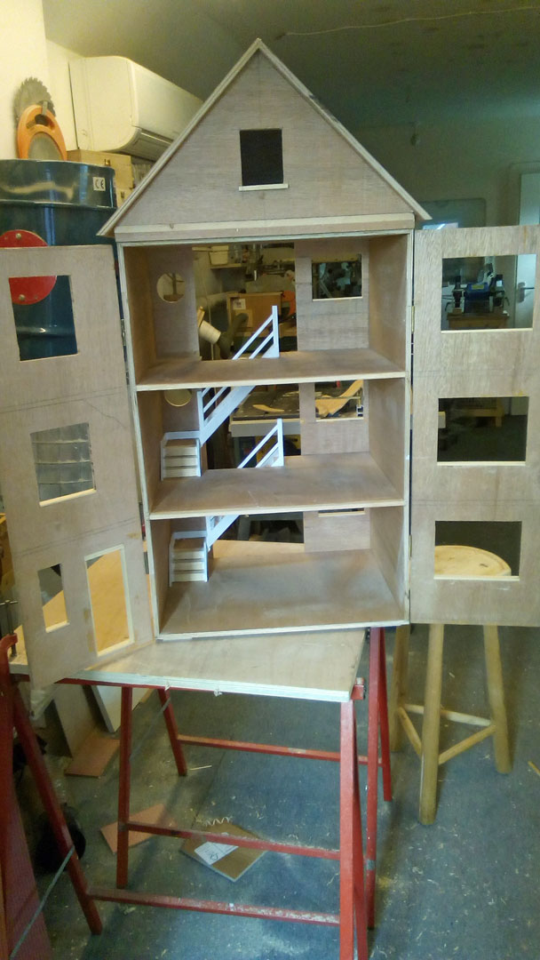 I had a request for a dolls house from my daughter. The prime requirement was that it had to fit through the loft hatch. It's not the first one that I have made but here is a short slide show of the construction. I know that it is timber framed but at least the walls are vertical which is more than can be said of many of the modern constructions - and there is no snagging to be done, it all worked prior to hand over including the electrics. There is a slight problem with the plumbing though - there isn't any.