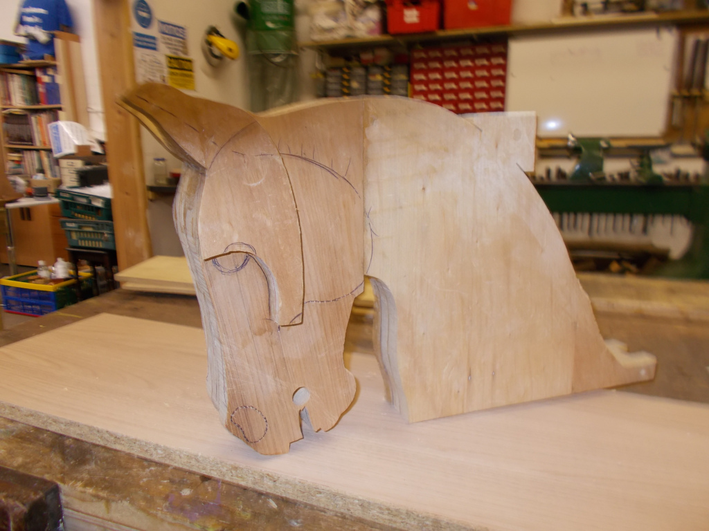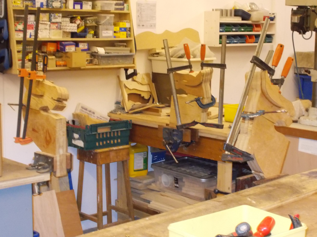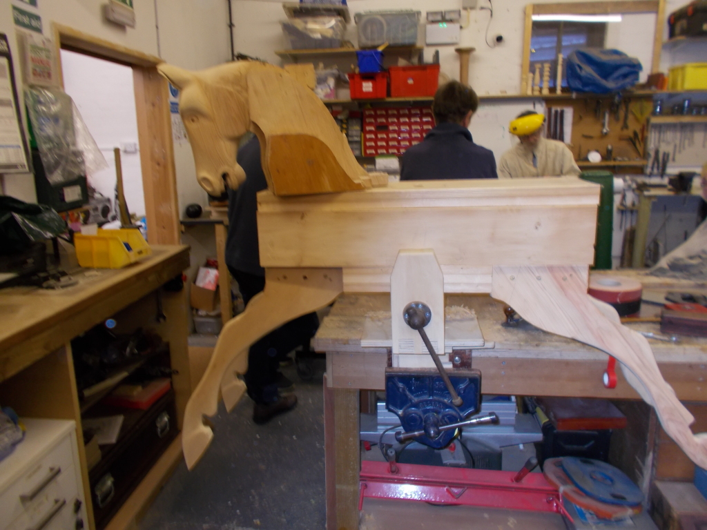 I toiled for at least three weeks and then, as ever, life overtook me and the rocking horses went on the shelf for what was supposed to be a short while. Fast forward 50 years and when I retired I started to create my bucket list. I came across this newly created organisation called Fareham Men’s Shed and all of a sudden the horses came to mind. As the Shed had all of the extra tools that I needed plus the companionship, laughter and of course, custard creams. the horse parts were pulled off of the shelf, the rocking-horse sh*t tidied away and the project resurrected.