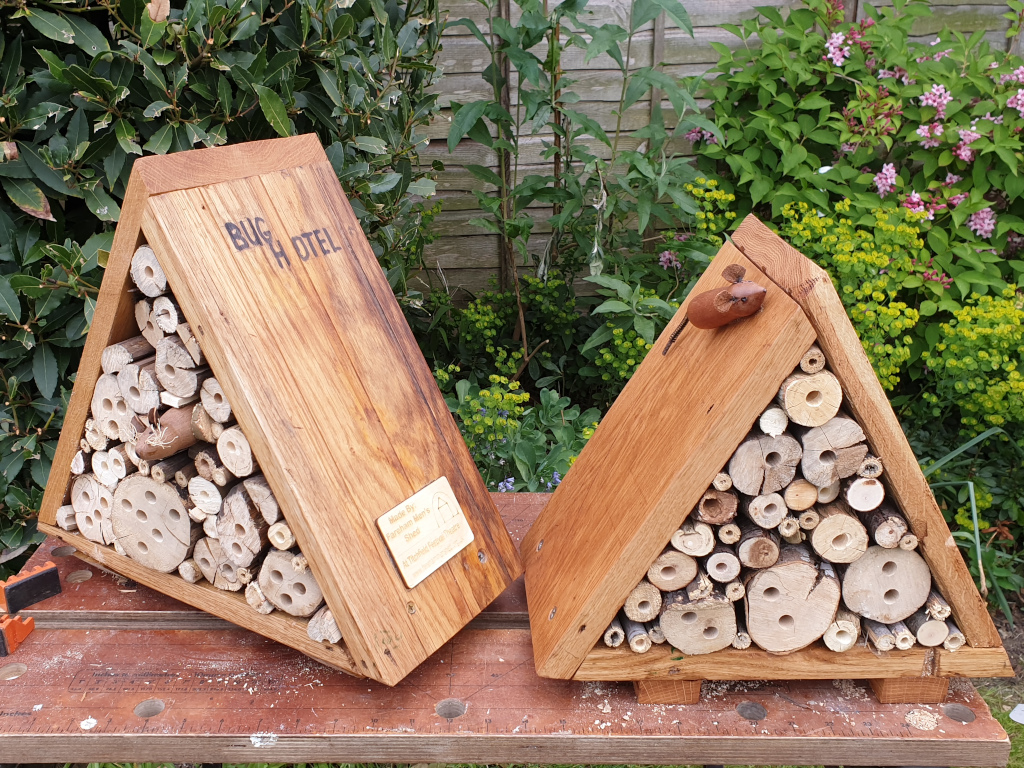 Garden related items made by Shedders sold well! These included dibbers, planters, a wheel barrow planter, bug hotels and bird nesting boxes, and of course, woodturned items. A couple of Oliver's plinky plonks also sold!