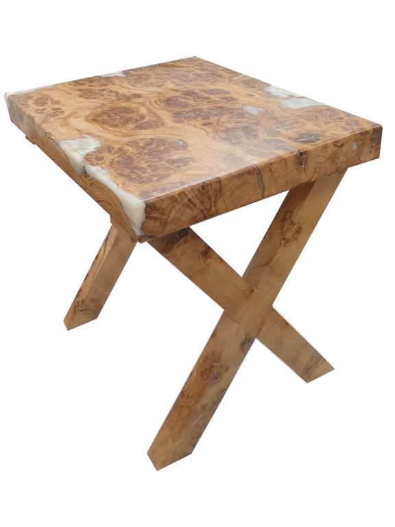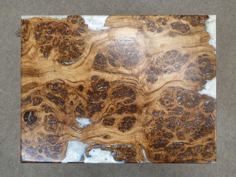 I spoke with our projects manager Brian and asked what he thought, could we do it? Would it be worthwhile trying to do a small project to check the idea. All went very quiet for a while and then a week ago he turned up with this really fantastic piece of furniture. It started as an ugly duckling piece of burr oak and turned into a beautiful swan.