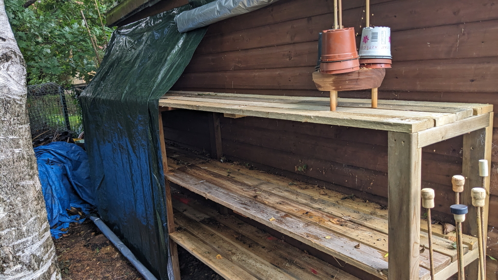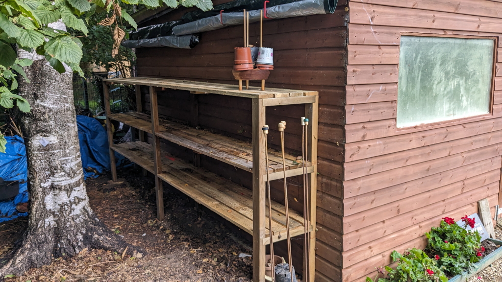 We attended the Wicor EcoFaye earlier in the year which was a great success and were subsequently asked if we could replace the flowerpot stand at the back of the shed. Colin Mick and myself went and removed the old stand along with a tree stump. We were extremely careful and called "flob-a-dob" numerous times in case we came across Weed, Bill or Ben but thankfully they weren't there. Colin re-purposed their old stand and created a nice strong new flat-pack home for their flowerpots off-site. We went back to assemble the frame (Colin had carefully written an instruction manual, we all know how difficult it is to build a flat-pack) and used some reclaimed pallet boards for the shelving. We were also asked to make some steps for the shop which Colin did. Since getting involved with The Shed he really has honed his skils. A really big thank you Mate. While I am on the subject of projects, we now have a large projects board on the wall in the social area and need to fill some of the blanks in with members prepared to get involved, so come on guys, please come forward and help with these, just pick up a magic marker and put your name next to some of them. Author: Brian Mccarthy