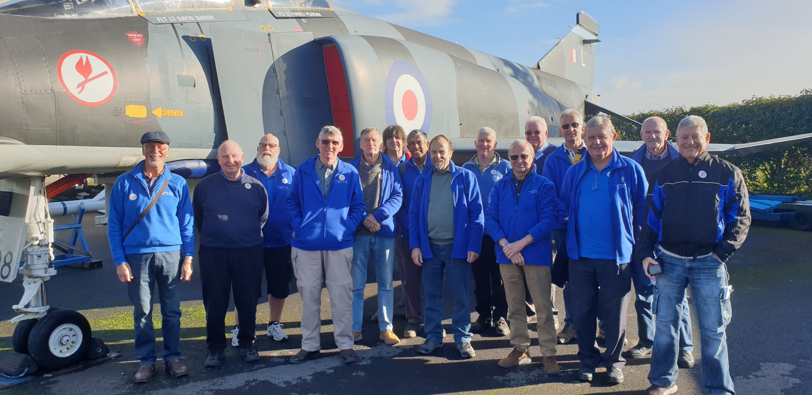 We had been here before but that was way back in 2017. At that time they had been gifted several acres of land next to the Museum and they had fantastic plans in which to expand so we thought that we would have a drive down and see what what had happened. Then it was being used for allotments but they had a sort of agreement that the allotments were going to be moved, totally amicably, nearer the Church. However whoever owns the access to the allotments (one of the big developers I believe) seems to be playing awkward so the allotments are still there. Still as we all know, "Man disposes while god disposes" or in this case developers dispose. 17 members had agreed to go, taking our own cars but obviously sharing. Unfortunately health problems trimmed the numbers to 15 and poor old Tony was one of the missing members - just shows how Covid is still affecting us all. so off we went, 4 cars and 15 men. Tony had arranged for a guide to show us round the exhibits and that honour fell to the highly knowledgeable Dave Norton. What I don't think any of us had realised was that it was half-term with, double the average number of visitors, but no problem, Dave's voice was than a match for the situation. Stories of his background as an R.A.F. pilot and tales told to him by previous visitors were absolutely fascinating. While the Museum has quite a small footprint it contains many truly remarkable exhibits and They actually have a reconstruction of the prototype Spitfire sans exhaust manifolds painted in a, what I felt was, a duck-egg blue colour but Dave assured that it was actually green. There was also a Lysander, used for delivering S.O.E. agents to France. Apparently the pilot had to land on an open field with just three lamps to show the landing strip. They had just 3 minutes to taxi back and turn round so that they would take off into the wind, drop off the S.O.E's, and if necessary load up and get airborne again! So much history in such a small place covering such a short time period. So after a guided tour Dave went for a well-earned drink and we took our time looking at those particular exhibits that Dave had whetted our whistles for and then off to the lecture hall for a very interesting potted history of the Museum. To finish off we just had to have a group photo taken in front of the Phantom that we were in front of six years ago, then back to The Oast and Squire for some of the group for an excellent and so convivial meal. Thanks Dave. Author: Chris Nixon