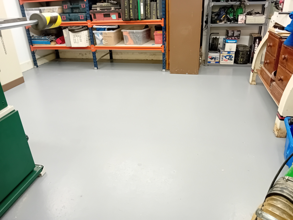 After lugging all of the equipment back from Lok'nStore, bolting the big stuff down, moving the other bits and pieces until it all sort of made sense the floor had obviously suffered so ColinF and JohnP set to and over the course of a couple of weekends repainted it so we now need to find a source of safety slippers, no more dirty great clodhoppers just soft soles from now on. You could not only eat your breakfast off it but also your dinner and tea. Great job guys but did you do UNDER the benches? What a fantastic early Christmas present for other members. Author: Chris Nixon