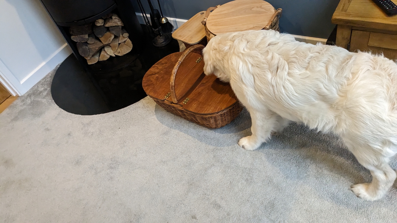 I have a lovely Golden Retriever puppy who keeps raiding my kindling basket for wood and I was wondering if I could get some sort of bespoke hinged wooden ‘lid’ made for it to stop him?