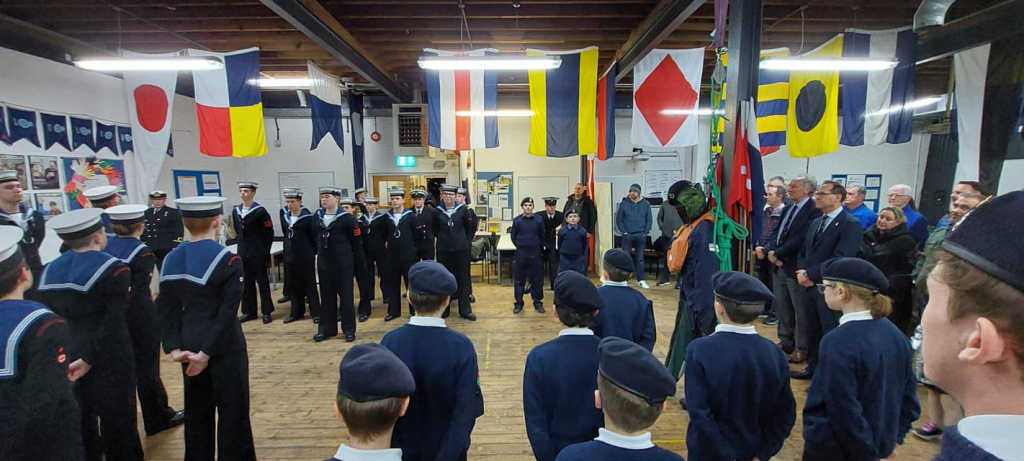 With some occasional help from a couple of other members, Gordon has spent hours on repairing and polishing the ceremonial crucifix for TS Tormentor Sea Cadets based at Warsash. They were so pleased with the finished item that they invited 2 members from our shed to attend their March Divisions. Having done most of the work, Gordon was an obvious choice and it seemed that I had no say in the matter of being the other one! The Right Honourable Flick Drummond, MP for Meon Valley was their guest of honour. She addressed the Divisions about teamwork and caring for each and then spent time inspecting and talking to every cadet. They also said a huge thank you to Titchfield Men’s Shed a shame they didn't quite get our name correct! The divisions, Continuity Drill Team, who recently came second in a national competition, gave an amazing display marching outside but as much as we enjoyed and appreciated the display Gordon and I couldn't wait to get back inside for a cup of tea. The whole evening was a credit to everyone who is involved in the TS Tormentor Sea Cadets and Gordon and I really enjoyed it Author: Chris Hodgson