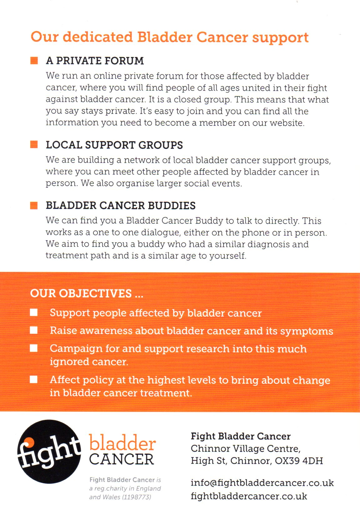 And if you want more information and help try https://fightbladdercancer.co.uk or call 01844-351621