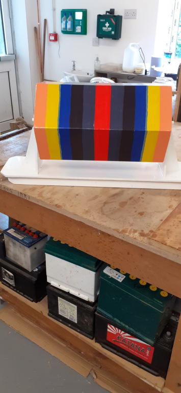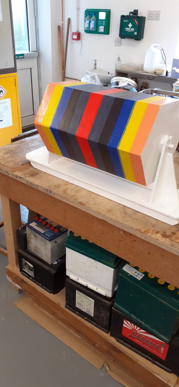 Their large raffle drum had snapped one of its pivots and was looking a little very tired with old stickers hanging from it. "Could you do anything with this we were asked?" Always willing to help we said we could repair it and if they would like we could paint it. The reply was "fantastic thank you!" Asked what colour they would like there was a flippant comment "well a rainbow would be nice!"