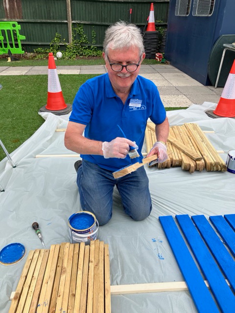 So we had planned for the 10th June so fingers were crossed for good weather. We had everything ready and made a start before the B & Q staff arrived as there was a lot of painting to do.