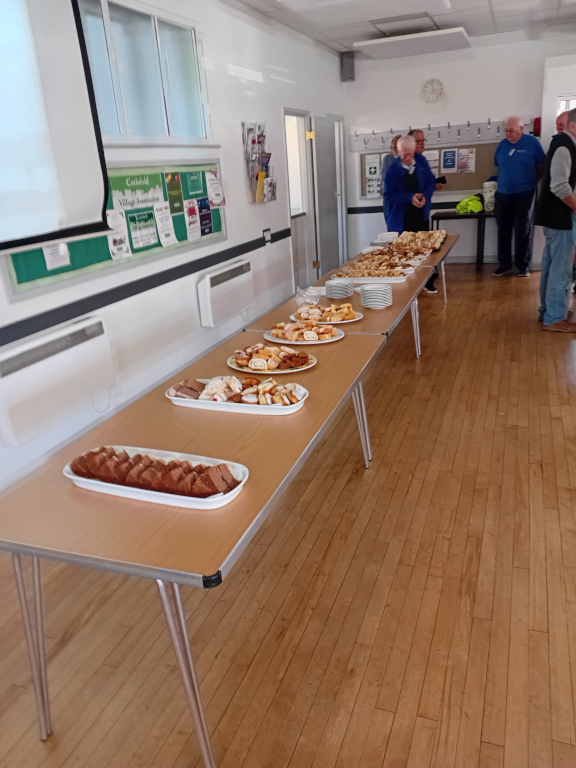 Fortunately we had extended our booking time to allow for a spread supplied by Gordon to honour his 90th birthday. The tables were actually groaning under the weight. Luckily this was one of our best supported sessions with 38 members and guests arriving. Even then Rod took the remaining scoff back to The Shed and filled the fridge with it. We now have enough sausage rolls to last for at least a week (assuming they don't turn green or grey).