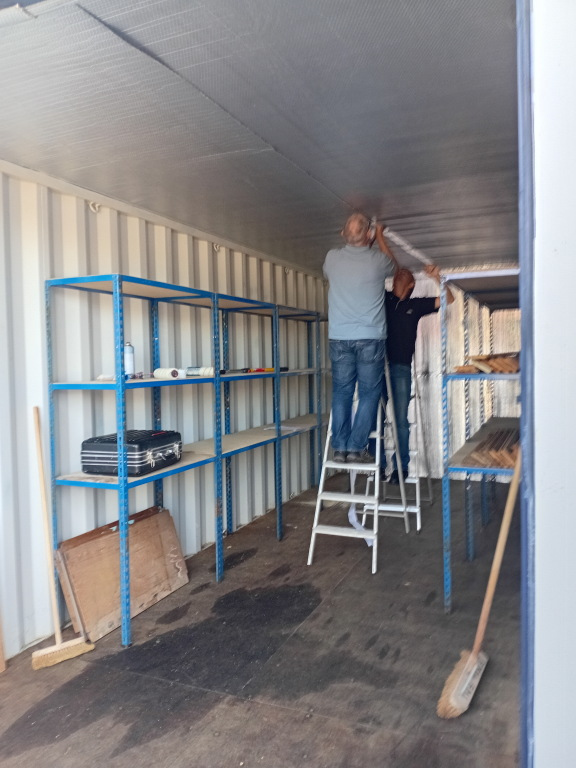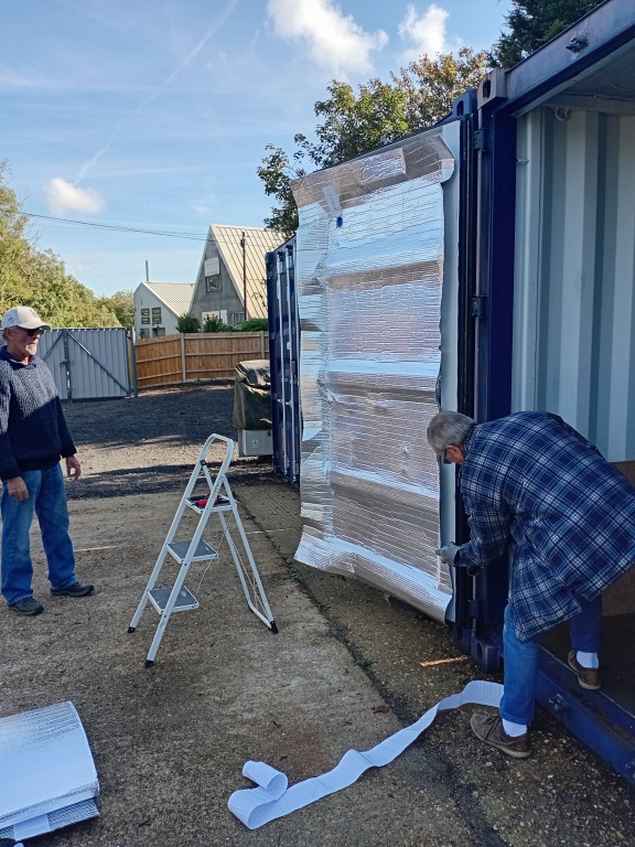 At last we have managed to lease a container within easy walking distance. Brian received the keys last week and the first job was to insulate it. The first thing was to put some of the racking up. It might have been easier if we had insulated before this but we really needed the space in The Shed.