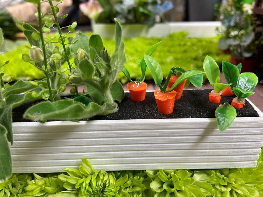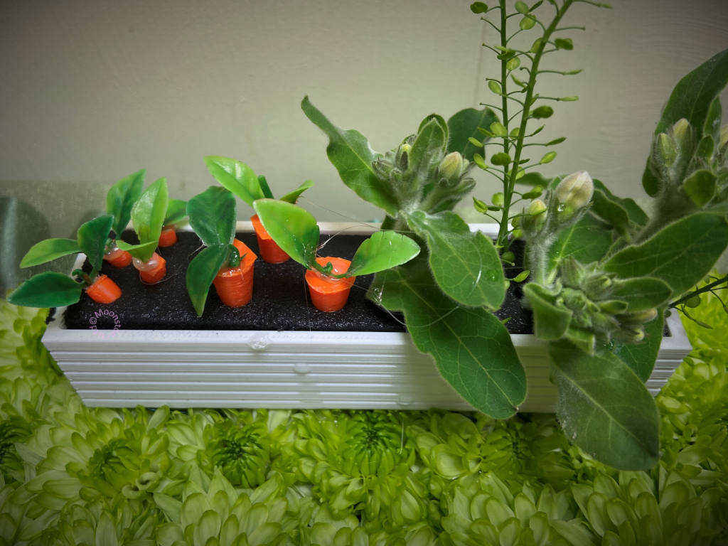 And the last one wanted not only the door and window but could we create the planters and a few carrots, luckily there was a small amount of orange that was just the right colour. If you look carefully at the last image you can even see the slug trails, you just can't keep them away from a tasty vegetable.